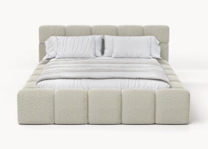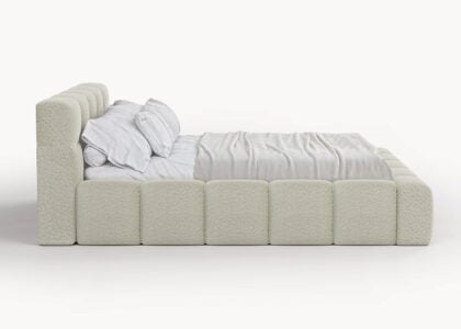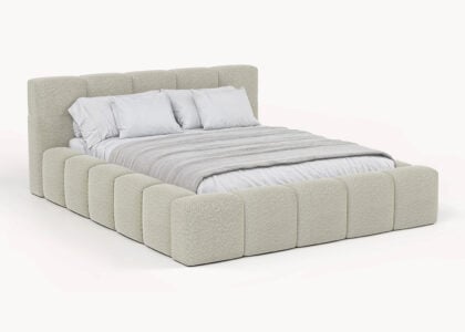 Das Polsterbett Bristol besticht durch sein einzigartiges Kopfteil in Bubbles-Form, ideal für Dachschrägen. Mit seiner niedrigen Höhe und dem sanften Veloursbezug fügt es sich perfekt in Ihr Schlafzimmer ein. Die dicke Polsterung bietet hohen Komfort und verleiht dem Raum eine luxuriöse Atmosphäre. Perfekt für stilbewusste und komfortorientierte Einrichtung.