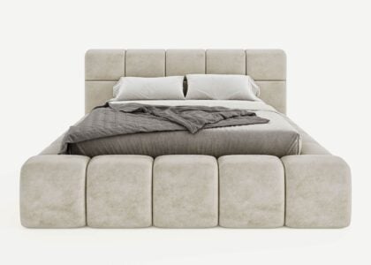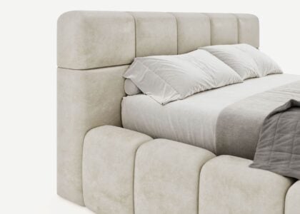 Das Polsterbett Bristol besticht durch sein einzigartiges Kopfteil in Bubbles-Form, ideal für Dachschrägen. Mit seiner niedrigen Höhe und dem sanften Veloursbezug fügt es sich perfekt in Ihr Schlafzimmer ein. Die dicke Polsterung bietet hohen Komfort und verleiht dem Raum eine luxuriöse Atmosphäre. Perfekt für stilbewusste und komfortorientierte Einrichtung.