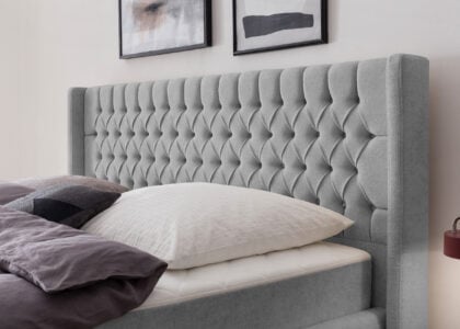 Das Modell Florida mit seinem gepolsterten Kopfteil und seiner Knopfheftung im Chesterfield-Design vereint mit seinen Ohren an den Seiten modernes mit klassischem Design. Wer es gerne extravagant mag, kann die Kopfteilhöhe in verschiedenen höhen wählen.