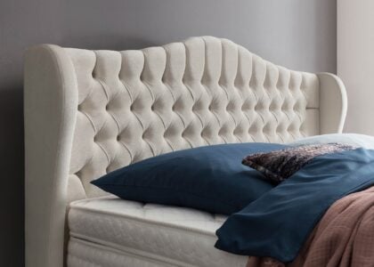 - Gepolstertes Kopfteil mit tief eingebrachten Knöpfen im Chester-Design
