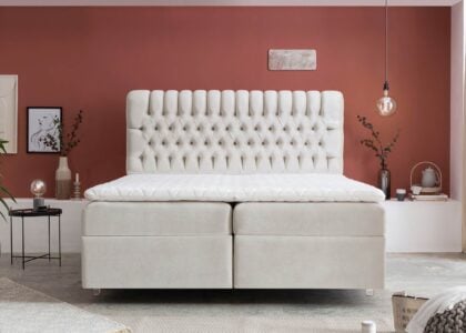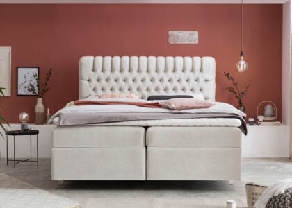 Das Modell Chester mit seinem gepolsterten Kopfteil und seiner Knopfheftung im Chesterfield-Design ist luxuriös und stilvoll. Wer es gerne extravagant mag kann die Kopfteilhöhe in verschiedenen höhen, bis zu 151 cm Hoch wählen.