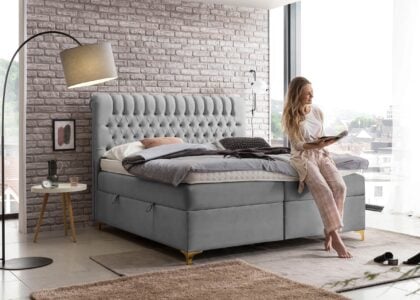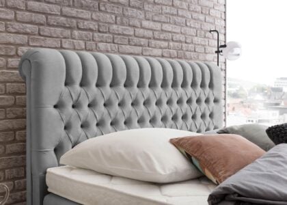 Das Modell Chester mit seinem gepolsterten Kopfteil und seiner Knopfheftung im Chesterfield-Design ist luxuriös und stilvoll. Wer es gerne extravagant mag kann die Kopfteilhöhe in verschiedenen höhen, bis zu 151 cm Hoch wählen.