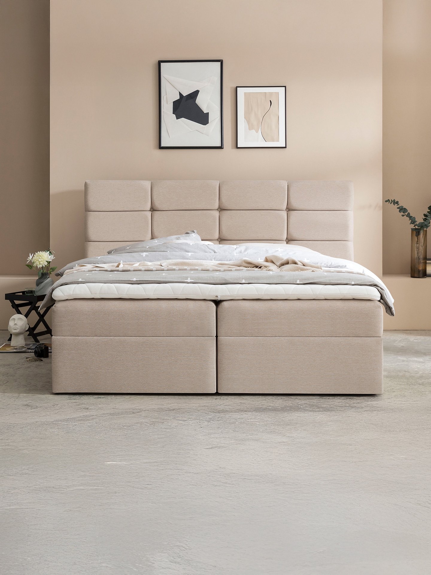 - Boxspringbett mit hohem XXL-Kopfteil bis 153 cm wählbar