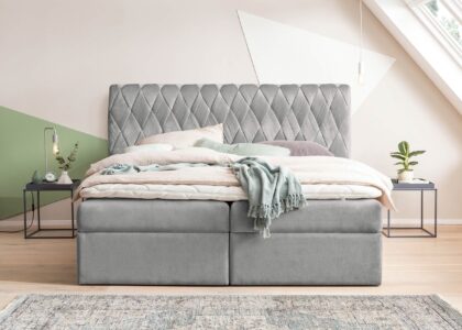 Im edlen Rauten Design gearbeitet ist das Kopfteil Lyon ein wahrer Blickfang. Handgeflochten aus hochwertigem Samt überzeugt das schmückende Kopfteil nicht nur optisch, sondern das geflochtene Kopfteil ist mit einer angenehm dicken Polsterung verarbeitet, sodass es förmlich dazu einlädt es sich mit einem Buch und einer Tasse Tee im Bett gemütlich zu machen.