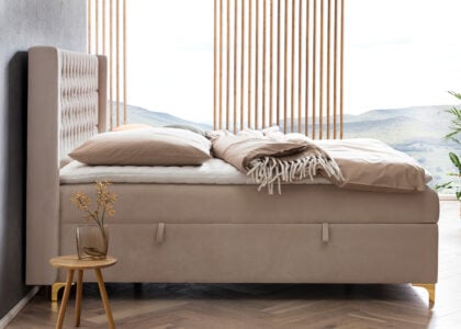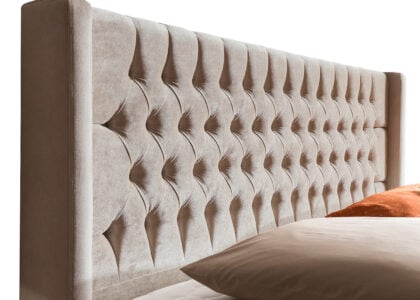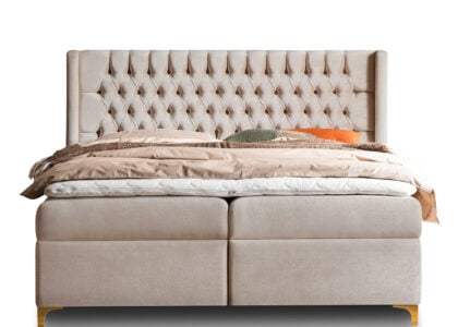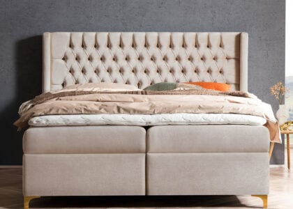 Das luxuriöse Modell Vegas ist ein Boxspringbett in klassischem Chesterfield-Design. Das gepolsterte Kopfteil mit seiner charakteristischen Chesterfield-Knopfheftung, integriert sich in jedes Schlafzimmer. Das komfortabel gepolsterte Kopfteil dient auch als angenehme Rückenlehne, so kann man den Tag mit einem schönen Buch ausklingen lassen.