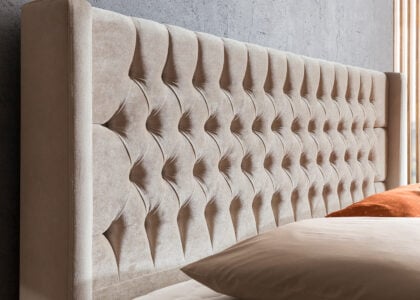 - Gepolstertes Kopfteil mit tief eingebrachten Knöpfen im Chesterfield-Design